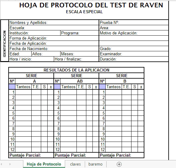 Test de RAVEN Completo Automatizado e Ilimitado en usos y en instalaciones en formato excel (incluye todas las Escalas)